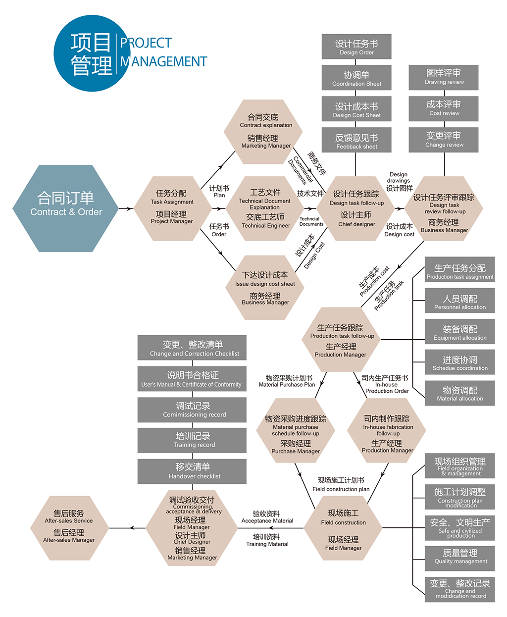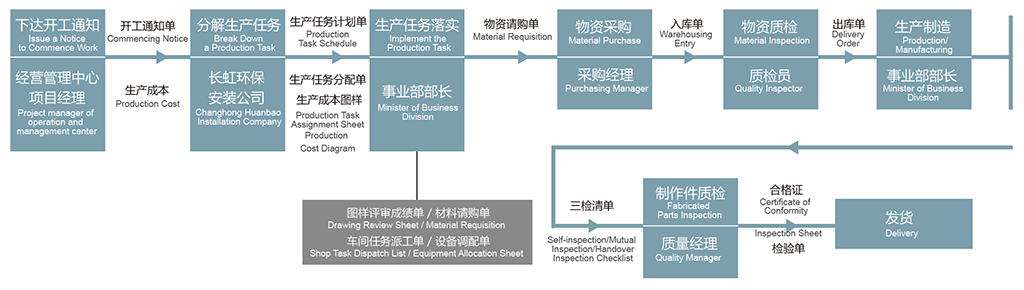 綜合管理部下達生產書至各專業事業部時,同時提供全套設備制造圖和生產預算,對生產任務的安全、愿量、進度和成本等提出明確的要求,并全程監督。