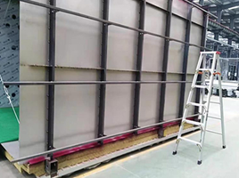 單通道室體。由風(fēng)機(jī)將室外環(huán)境溫度的空氣經(jīng)過進(jìn)風(fēng)管、過濾器抽進(jìn)強(qiáng)冷室,按車體外形布置鋁制旋壓的方向可調(diào)的吹風(fēng)嘴,吹風(fēng)嘴風(fēng)速為20m/s左右。吹風(fēng)嘴離車體表面距離不小于300mm。 室體為自承重結(jié)構(gòu)由鍍鋅板制作,內(nèi)管道由鍍鋅板制作。室體上面設(shè)有獨(dú)立結(jié)構(gòu)的鋼平臺承載換氣裝置。 送入強(qiáng)冷室的冷卻風(fēng)潔凈度為粒徑≥5μm的灰塵去除率99%。在低溫環(huán)境下送入強(qiáng)冷室的冷卻空氣可調(diào)節(jié)到要求的溫度,避免工件過冷、結(jié)露。